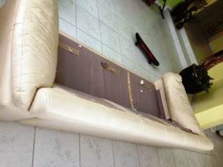 My husband told me he would help me at night when we returned from work and that we might even recruit our oldest daughter to help, but I hate waiting for others when I want something done. So I took matters into my own hands. I didn't want to stare at the disgusting couch anymore.